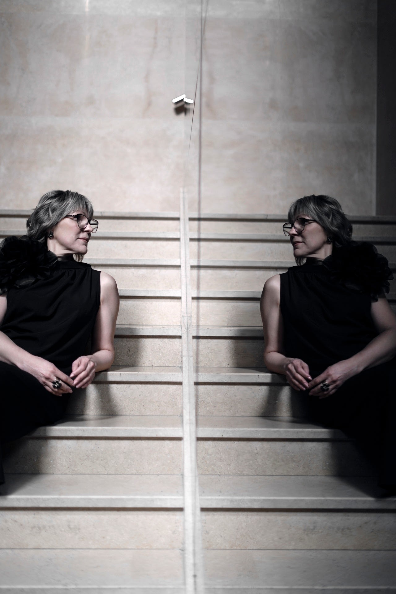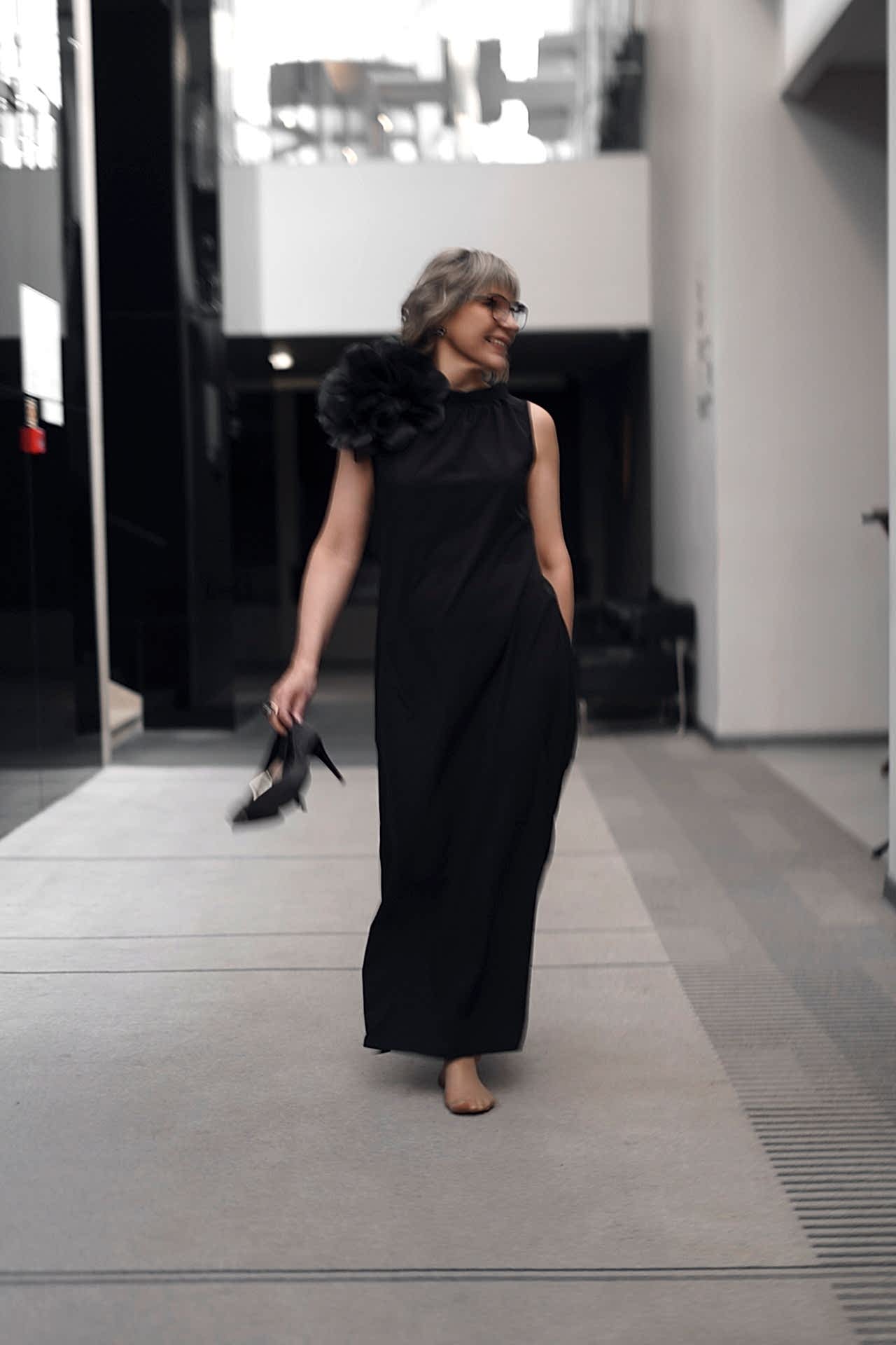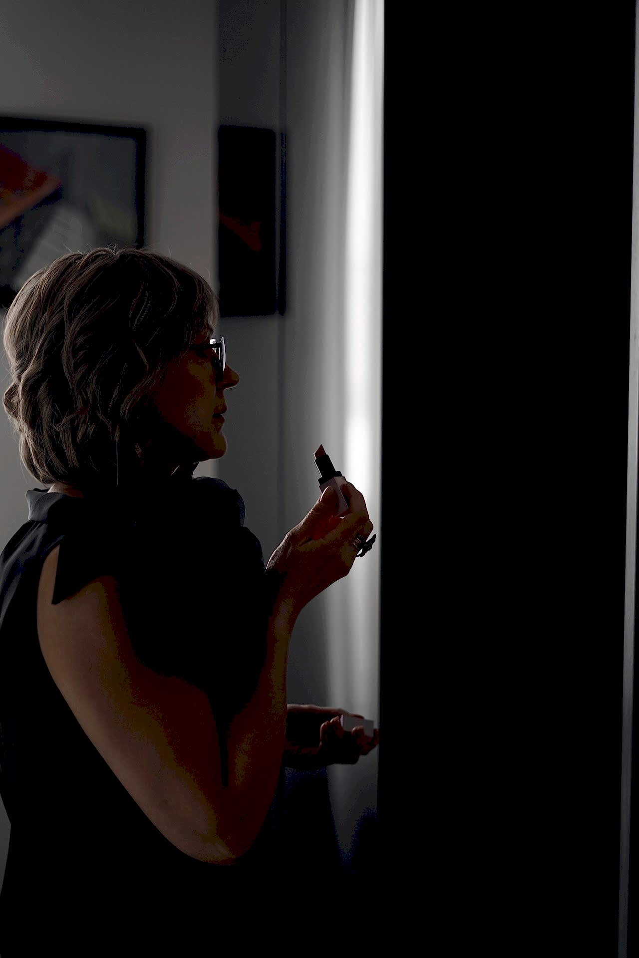 Основой стал сияющий тон, который придал коже здоровое свечение, не перегружая её. Акцент был сделан на глаза: нейтральные тени с лёгким мерцанием подчеркнули глубину взгляда, а аккуратные стрелки добавили выразительности. Румяна персикового оттенка добавили свежести, а завершил образ насыщенный оттенок помады в тон натуральным губатут